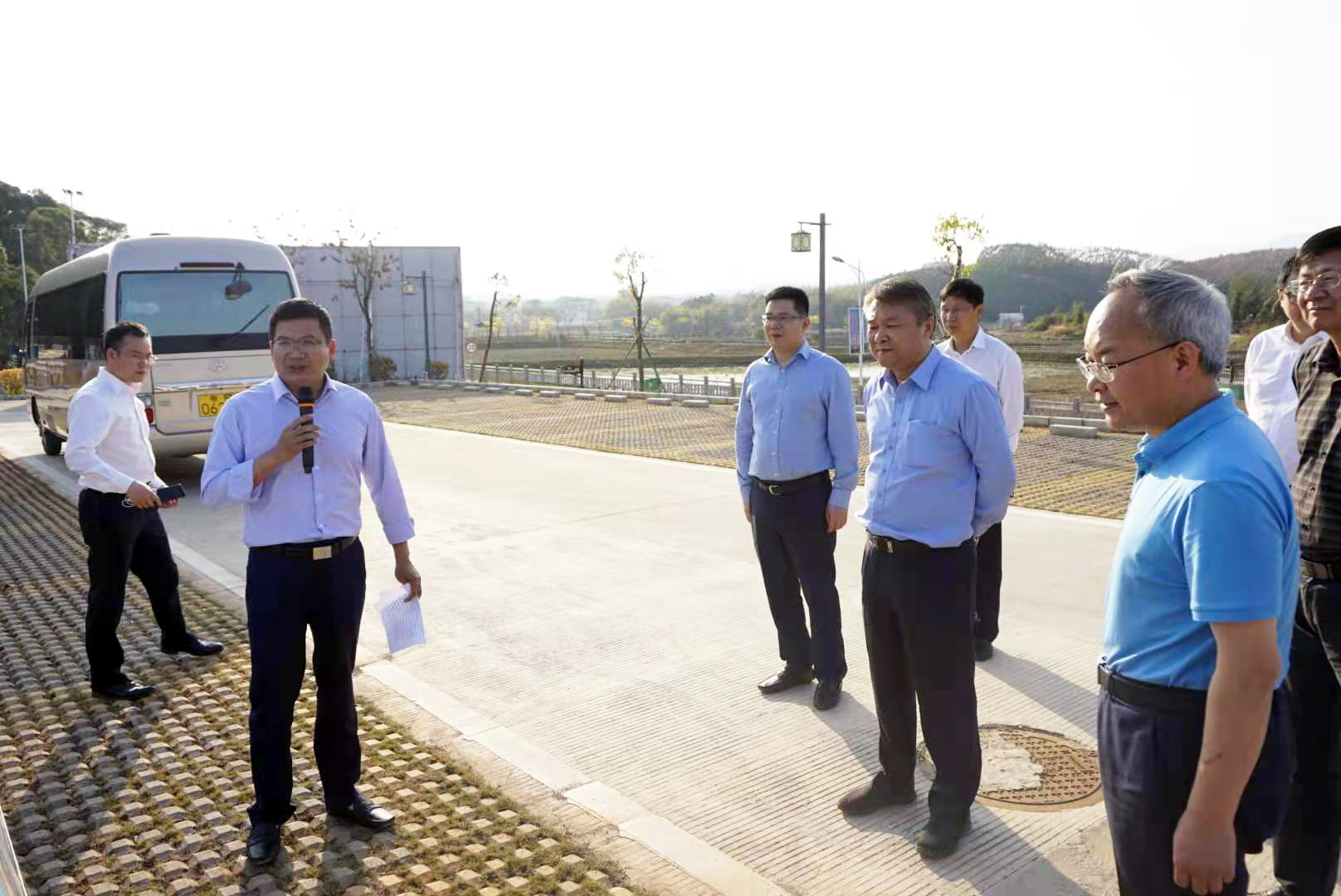 座谈会开始前,张董一行前往东源县骆湖镇下欧村考察现代农业产业园项目,并前往灯塔盆地国家现代农业示范区进行参观调研。
