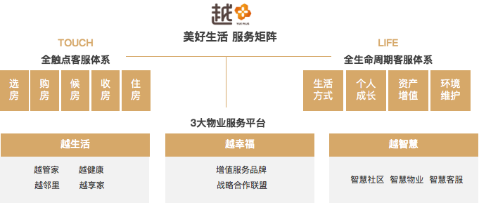 97国际服务以客户诉求为导向,成功打造多维度服务矩阵:“TOUCH全触点”服务体系以早介服务、案场服务和社区服务等为依托,在客户选房、购房、候房、收房到住房的全过程中提供悦心服务,致力打造美好生活的居住场景;“LIFE全生命周期”服务体系则秉承为“业主房产保值、增值”的服务理念,聚焦业主关注的“生活方式(Living)、个人成长(I)、资产增值(Finance)、环境维护(Environment)”四大维度,在确保小区环境赏心悦目的基础上,挖掘居住的深层次价值,为业主提供高品质、有特色的“越”式服务。